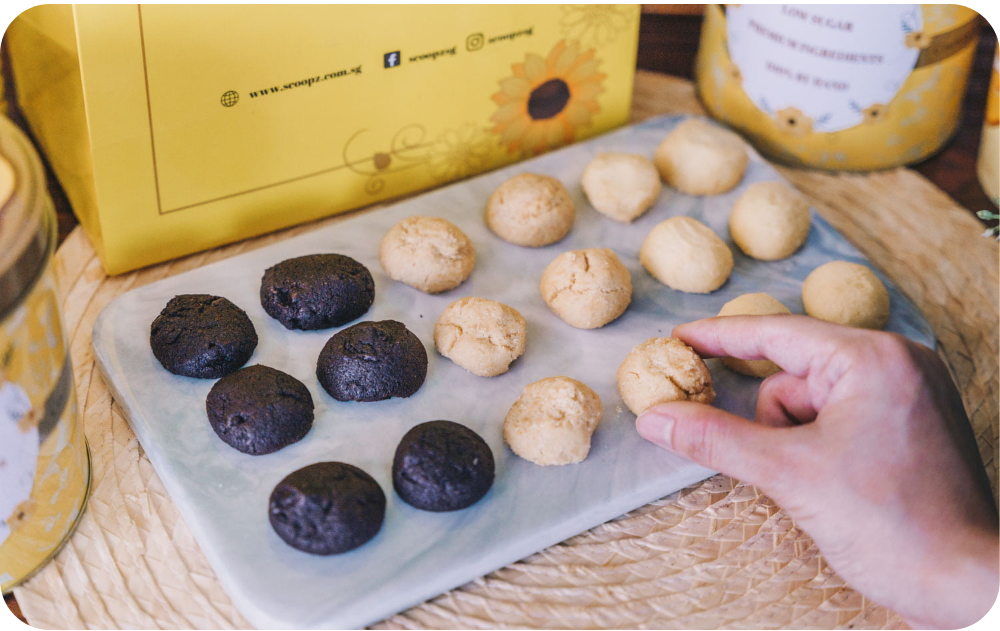 Tried their eggless handcrafted cookies, buttery Golden Pebble and nutty Ah Ma Almond. Both are so fragrant and melt in the mouth!